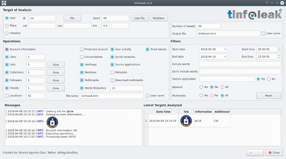 Tinfoleak – Un outil OSINT / SOCMINT pour Twitter (X)