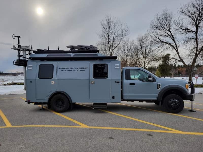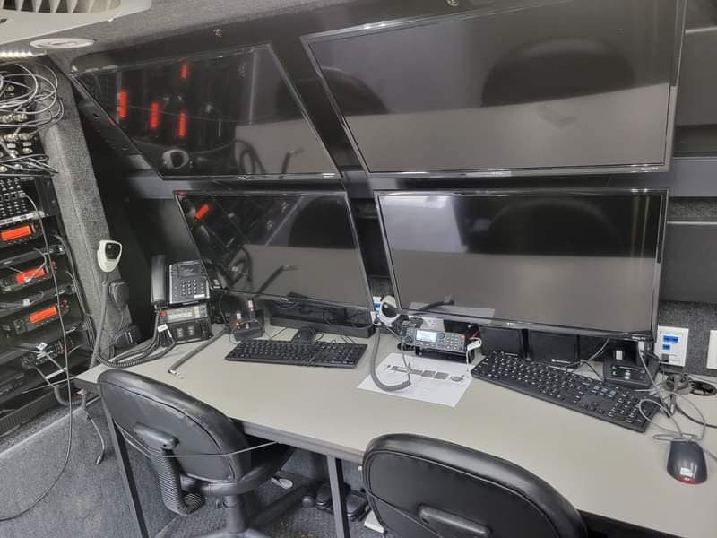 Je vous partage un véhicule de communication en situation d'événements policières suite à une crise ou pour les entraînements. Le véhicule a été acheté en 2020 chez Nomadges hors Montanna. Le véhicule est équipé de uhf, radios NXDN, répéteurs, internet et une ligne 911. Équipé d'écrans et des radios APX,8500, consoles 7500E et une caméra PTZ sur mat avec générateur.